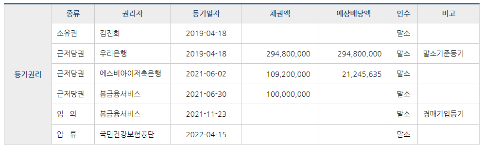 본 물건 등기부 등본 채권총액 50,400만원 확인됩니다. 말소기준권리 2019.04.18 근저당으로 이후 근저당2건 압류1건은 낙찰시 매각으로 모두 말소됩니다.권리상 하자나 인수할 부분은 없어보입니다. 현재 채무자겸 소유자 거주로 낙찰후 명도외 특별한 권리하자는 없습니다.