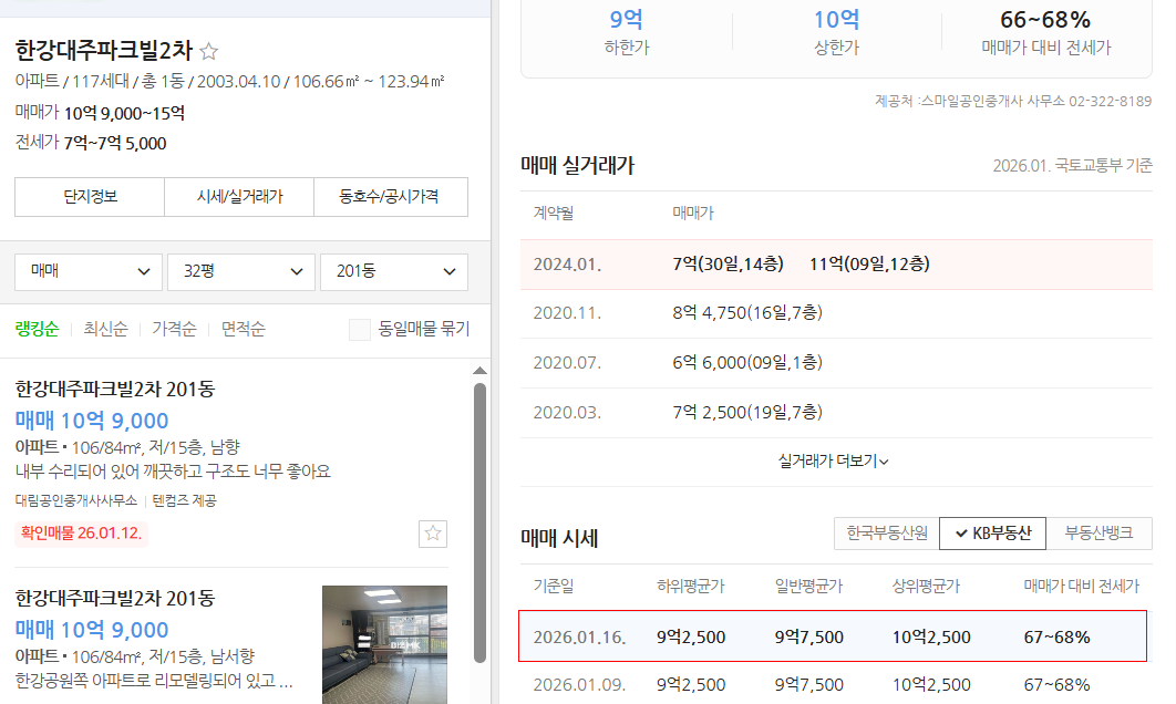 한강대주파크빌2차 전용 25.70평 경매 물건 안내드립니다. 최저가 8.6억대로 경매가